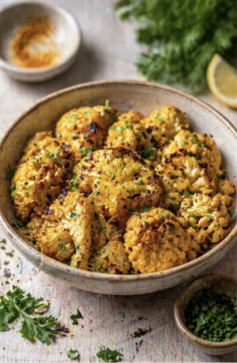 Le Chou-fleur rôti au curcuma est une recette simple, savoureuse et réconfortante qui met en valeur toute la richesse aromatique des épices. Préparé à partir de bouquets de chou-fleur délicatement enrobés d’huile d’olive, de curcuma et d’un mélange subtil d’assaisonnements, ce plat révèle une texture tendre à l’intérieur et légèrement